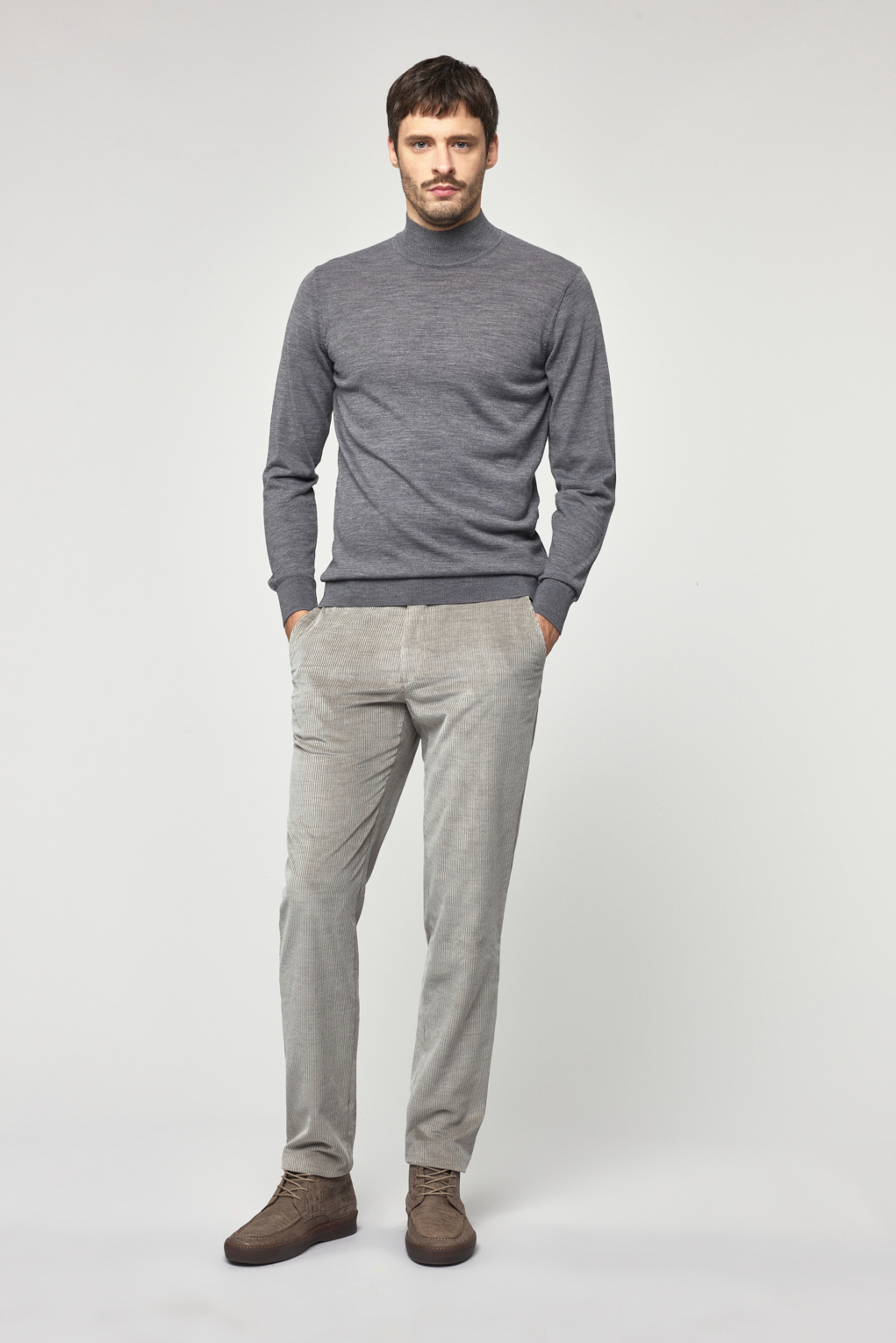Meticulously crafted from 100% pure wool, this Vicenza half-turtleneck sweater in an elegant off-white shade is a refined and versatile masterpiece for the modern man’s wardrobe. Its timeless hue adds a sophisticated touch to your style season after season, while its fine craftsmanship and superior quality deliver both comfort and elite elegance. An essential piece in contemporary men's fashion, it pairs perfectly with tailored trousers and layered outfits, completing your distinguished look for any occasion.