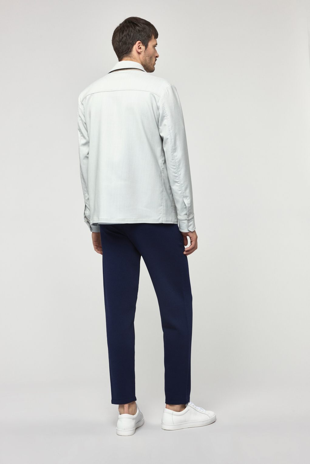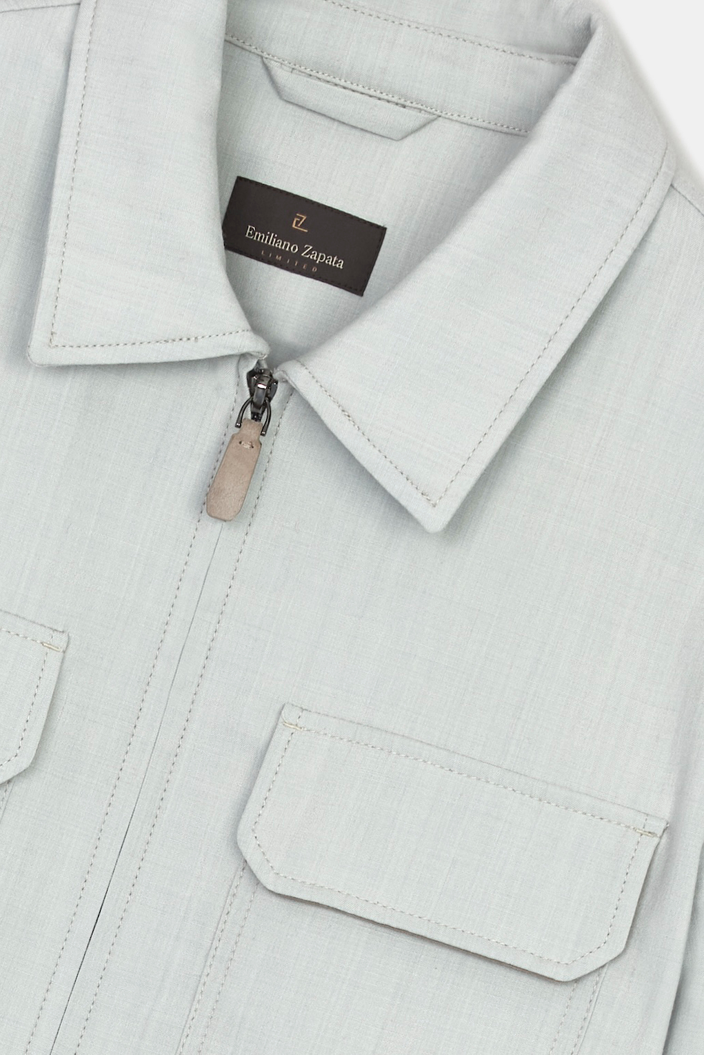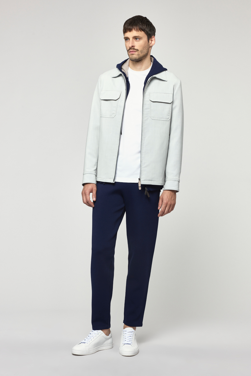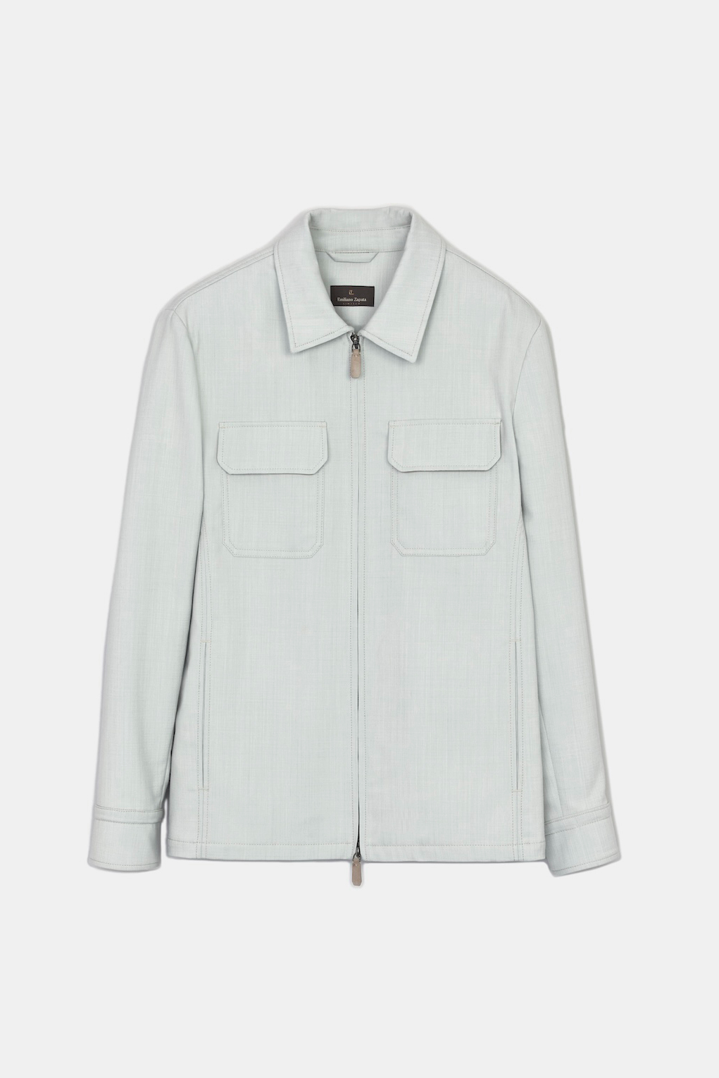This Trapani overshirt, crafted from a refined blend of wool and Tencel, features an elegant collar and meticulously detailed pockets and zippers, exuding distinguished sophistication. Elevating your winter wardrobe with unparalleled elegance and exceptional comfort, its masterfully tailored timeless design ensures you command attention in any refined setting.
