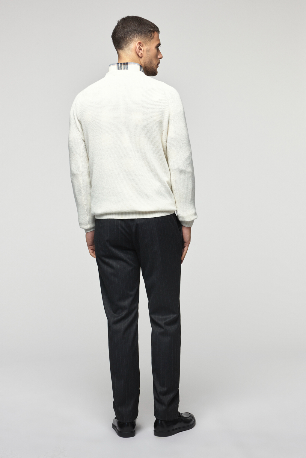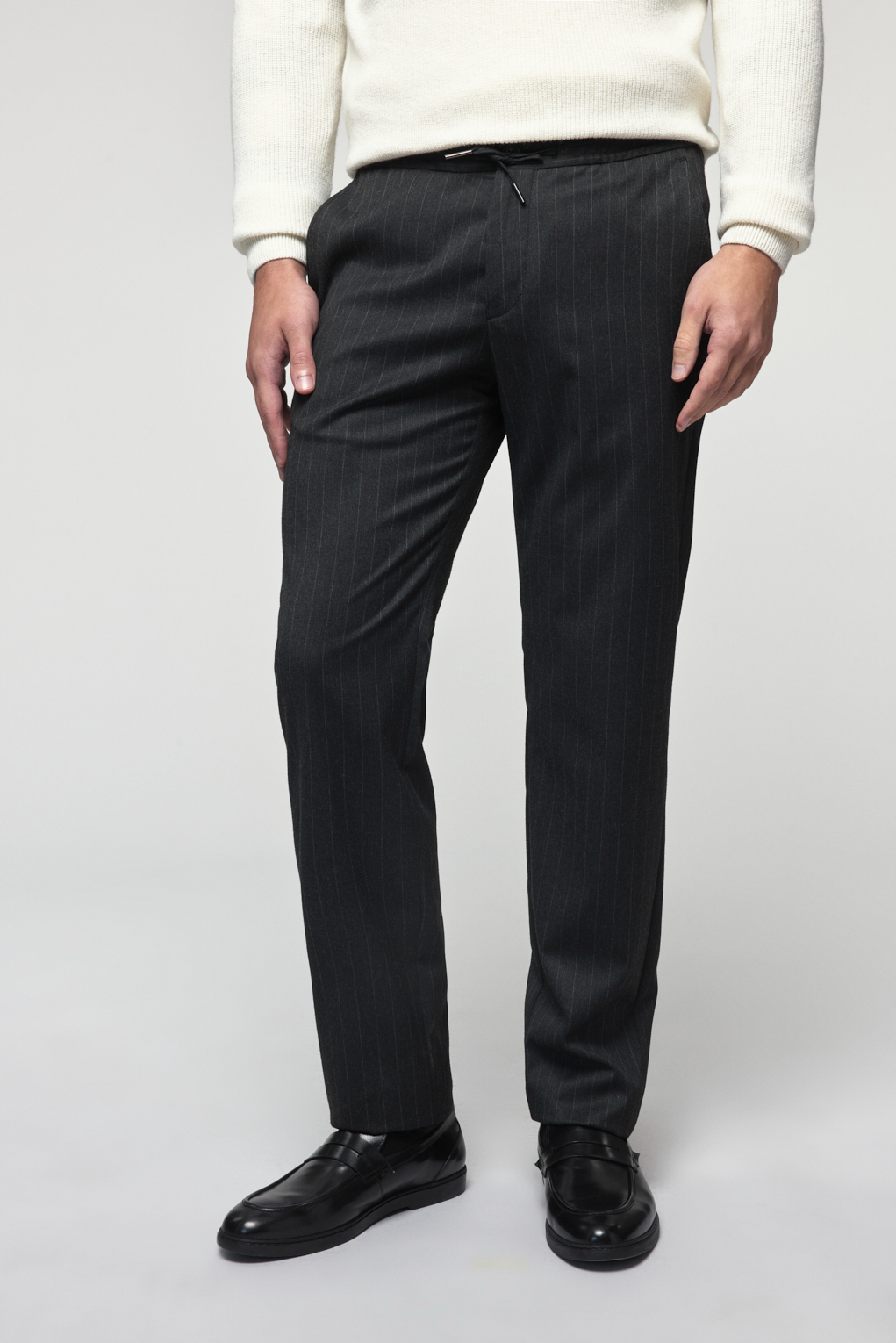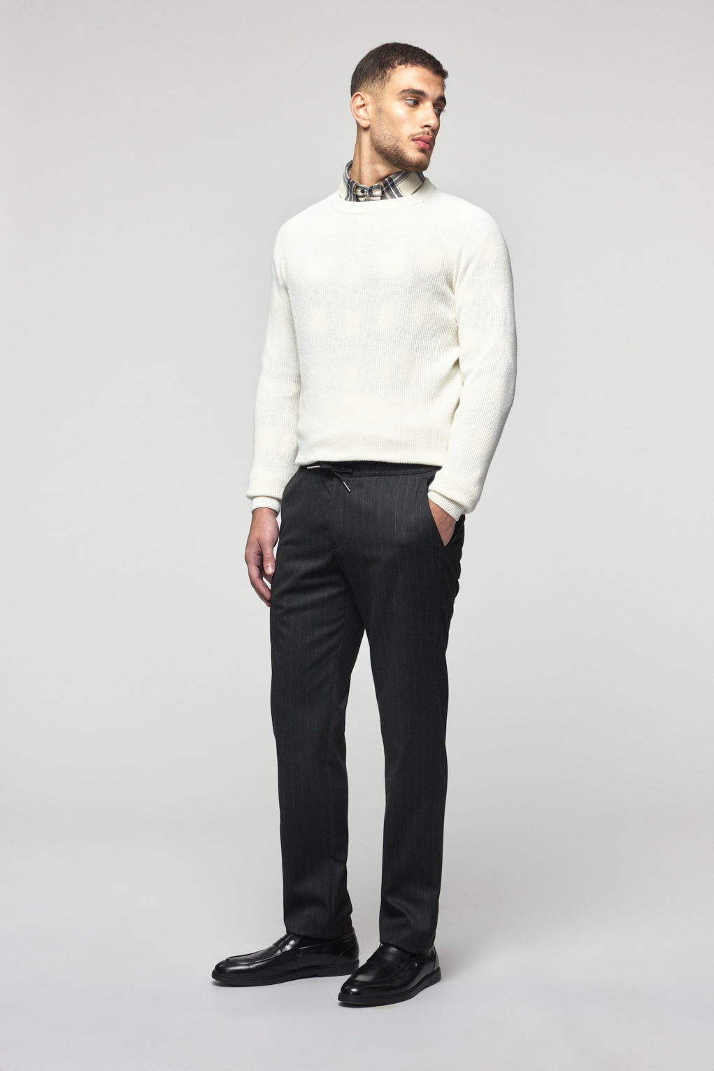 Crafted with modern pinstripe detailing, the Mattias trousers embody a seamless blend of comfort and sophisticated style. The discreet elastic side waistband ensures effortless wear throughout the day, while the light hue injects a refined vibrancy to your winter wardrobe. Its sleek silhouette commands a poised and confident presence across any occasion.